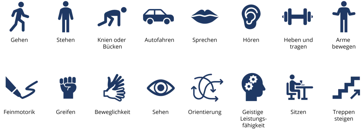 Deshalb erhalten bei uns alle Kolleginnen und Kollegen die Möglichkeit, sich für den Fall von Verlust bestimmter grundlegender Fähigkeiten oder bei Pflegebedürftigkeit / Demenz eine monatliche Rente in Höhe von bis zu 2.500 Euro zu sichern. Egal, ob der oder die Betroffene noch weiterarbeiten kann oder will. Und das so lange, wie die Beeinträchtigung besteht.