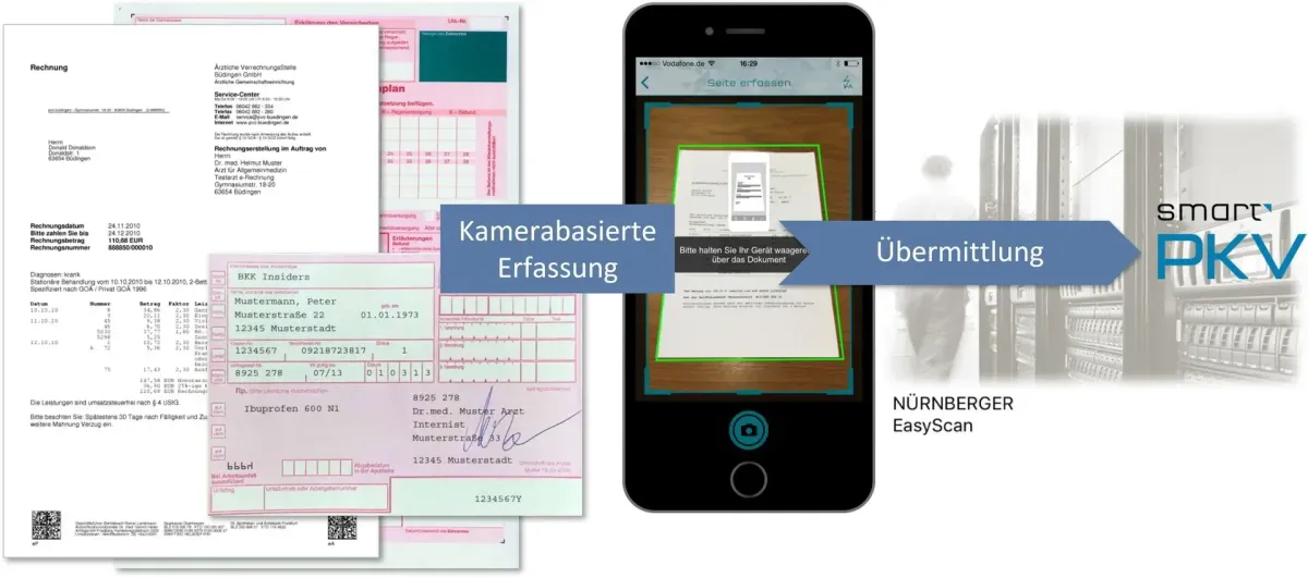 Mit EasyScan reichst du deine Belege unkompliziert, schnell und sicher per Smartphone oder Tablet ein. So sparst du nicht nur Zeit und Porto, sondern deine Kosten werden auch noch schneller erstattet. Einfach Arztrechnung, Rezept oder Bescheinigung scannen und senden.